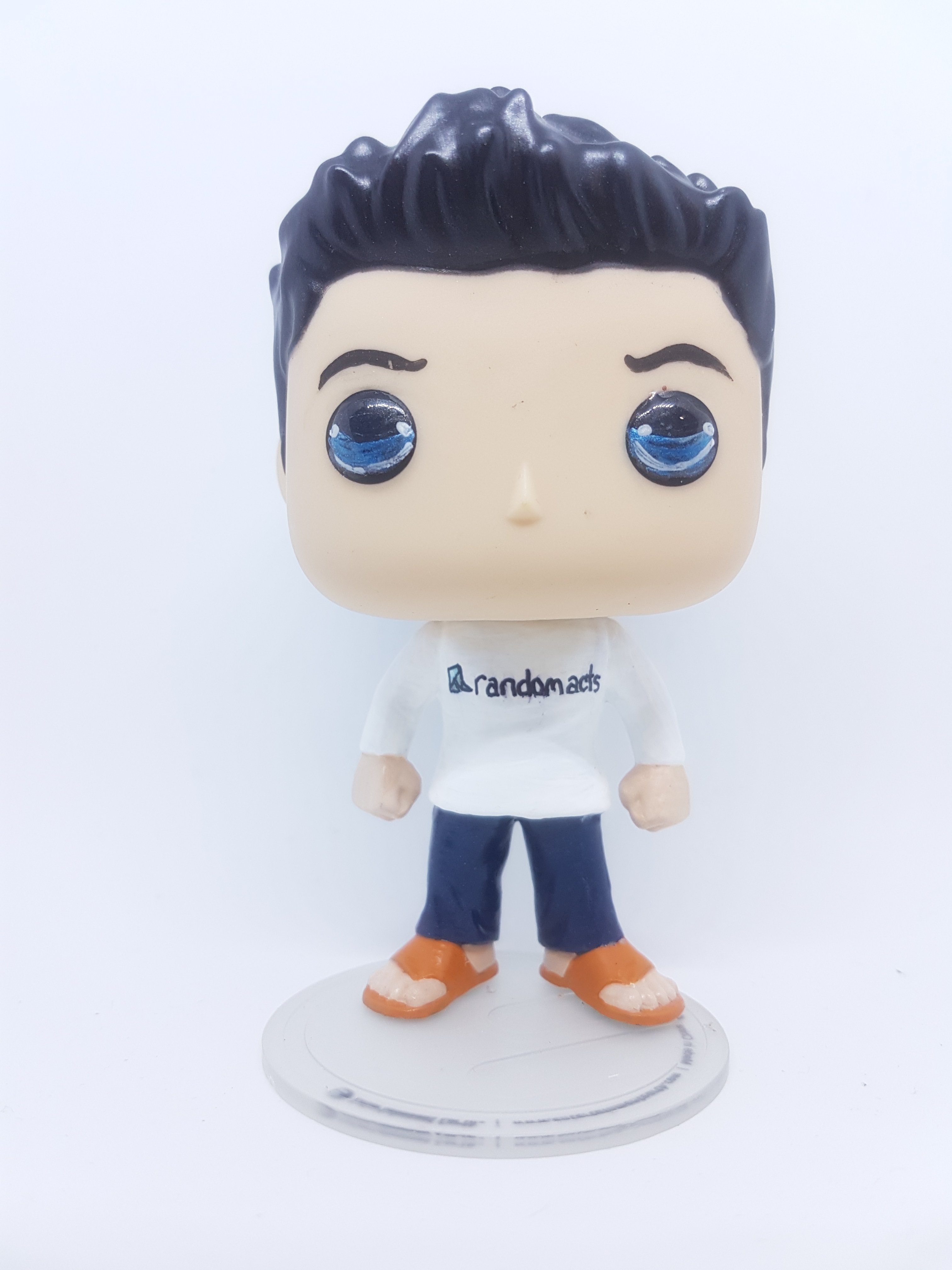 This took 3 separate pops to put together. A Callum Lynch body for the torso, A Wallace body for the legs and feet (so he could be wearing his flip flops) and a Cas head. The 3 pops were broken down into the parts needed.
