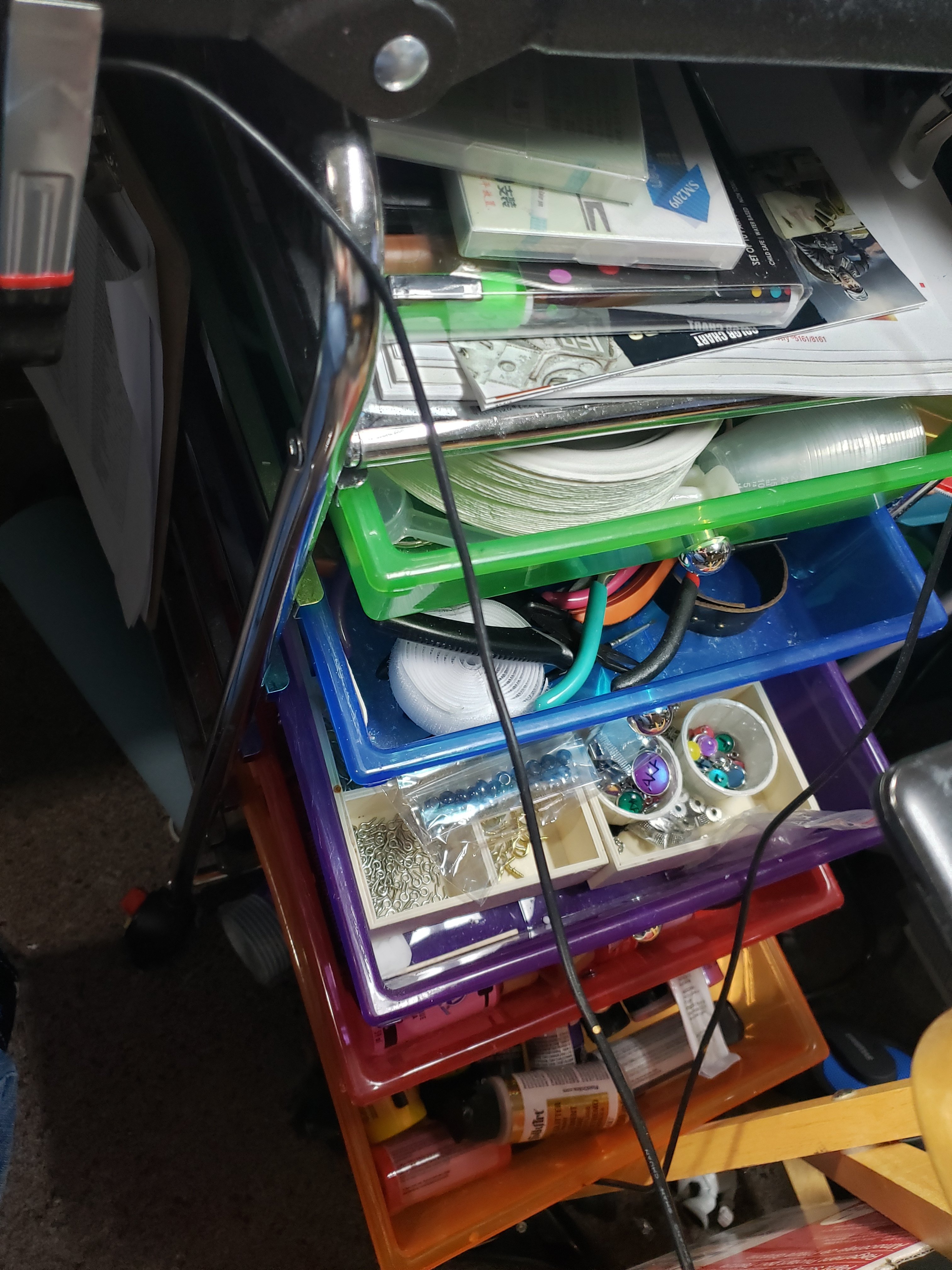 Below is …. well… stuff. It’s cabochon storage, Metal stamping supplies, wax seal supplies, polishing supplies and anything else I can’t find another place for.