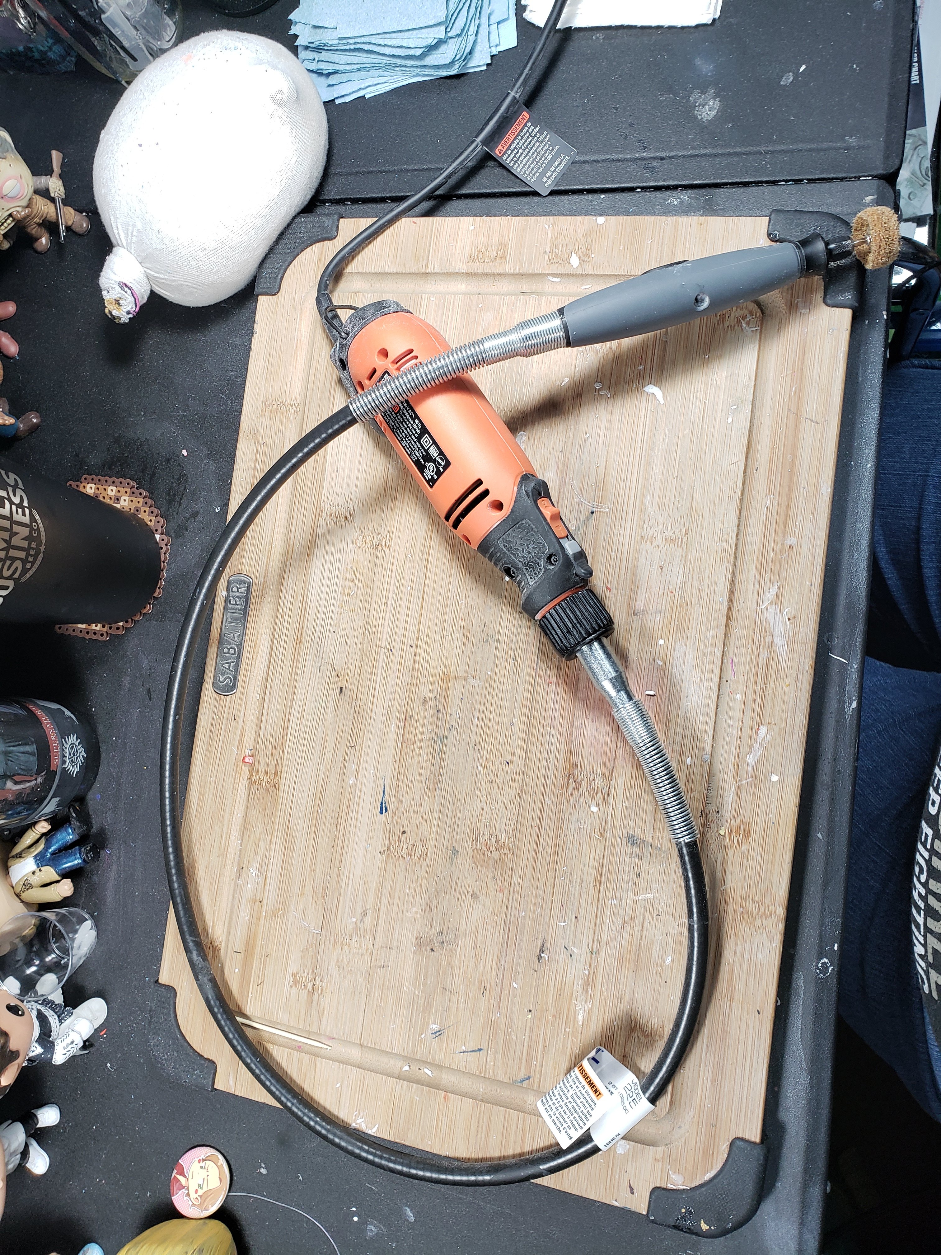 My Rotary Tool is one of the 2 most used items. With different heads it can cut, smooth, carve, polish, sand and makes quick work of a lot of the processes. I have an off name one, bought at Canadian Tire for about $40 (CDN) I splurged and bought a flex shaft attachment which is incredibly helpful. it allows easier movement and longer use without less hand strain. Most rotary tools have similar size of shaft so heads are often interchangeable, especially with different colletts.